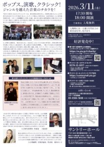 3月11日サントリーホールにて開催予定です!ぜひ皆様お越しください♪