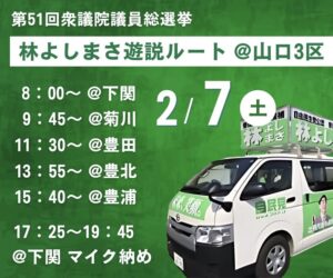 地元・山口の皆様の元へ、林芳正の選挙カーが最後の一瞬まで想いを届けに伺います!