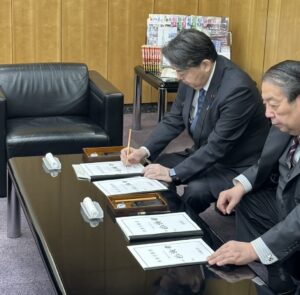 また、同省大臣室にて村上誠一郎前大臣より、大臣引き継ぎを受けました。