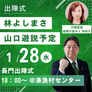 地元・山口の皆様のもとへ、代理で総務大臣夫人 林裕子さんが伺います!お近くの方はぜひ足をお運びください。