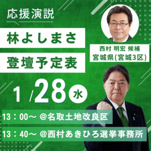 林芳正総務大臣が、西村明宏候補(宮城3区)および渡辺孝一候補(北海道10区)の応援に駆けつけます!